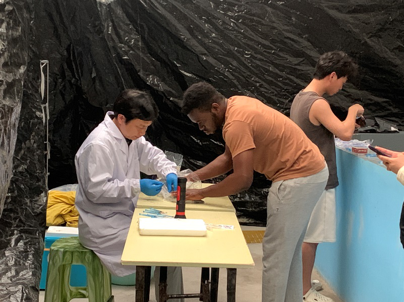 上海海洋大学鳗鲡东谈主工生息询查团队开展亲本莳植与生息实践。