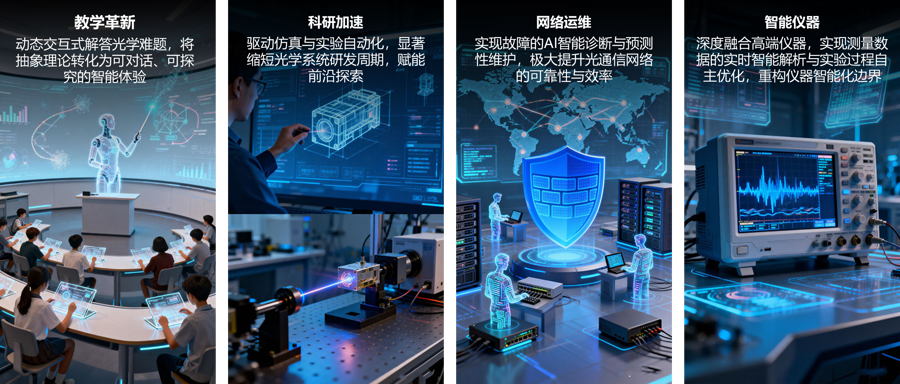 此外,从工业设计应用方面,该模型将深度赋能光学产业链的关键环节。例如,在国产高端仪器领域,可提升仪器使用体验,大幅增加高端仪器的智能化水平;在算力基础设施领域,为数据中心光互连系统的故障智能诊断与运维提供决策支持,并对光模块进行快速、精准的出厂标定;在激光制造领域,推动激光器等核心器件向参数自主优化、状态智能预测、故障自动运维的智能化方向升级。