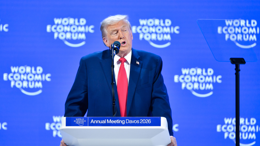 1月21日,美国总统特朗普在瑞士达沃斯举行的世界经济论坛2026年年会发表演讲。\n 新华社发