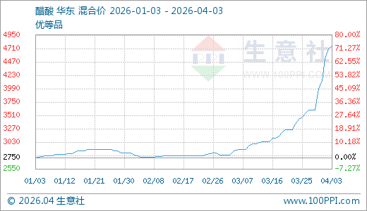 醋酸04月03日最新价钱4750.00元/吨,最近5天高涨31.58%,10天高涨37.95%,20天高涨56.59%,30天高涨65.89%,60天高涨69.64%,90天高涨72.73%。