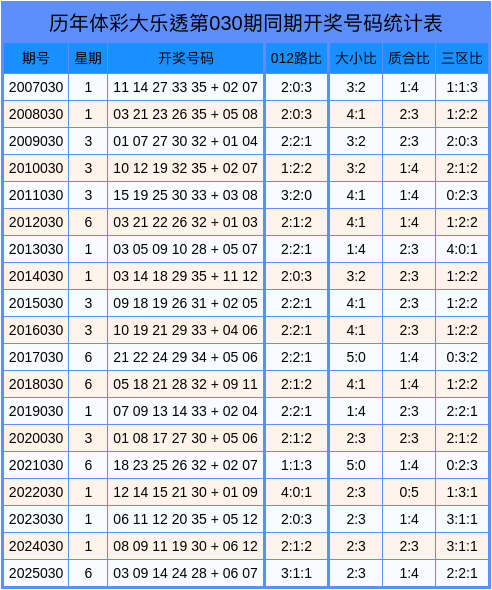 积年第2026030期大乐透数据统计表