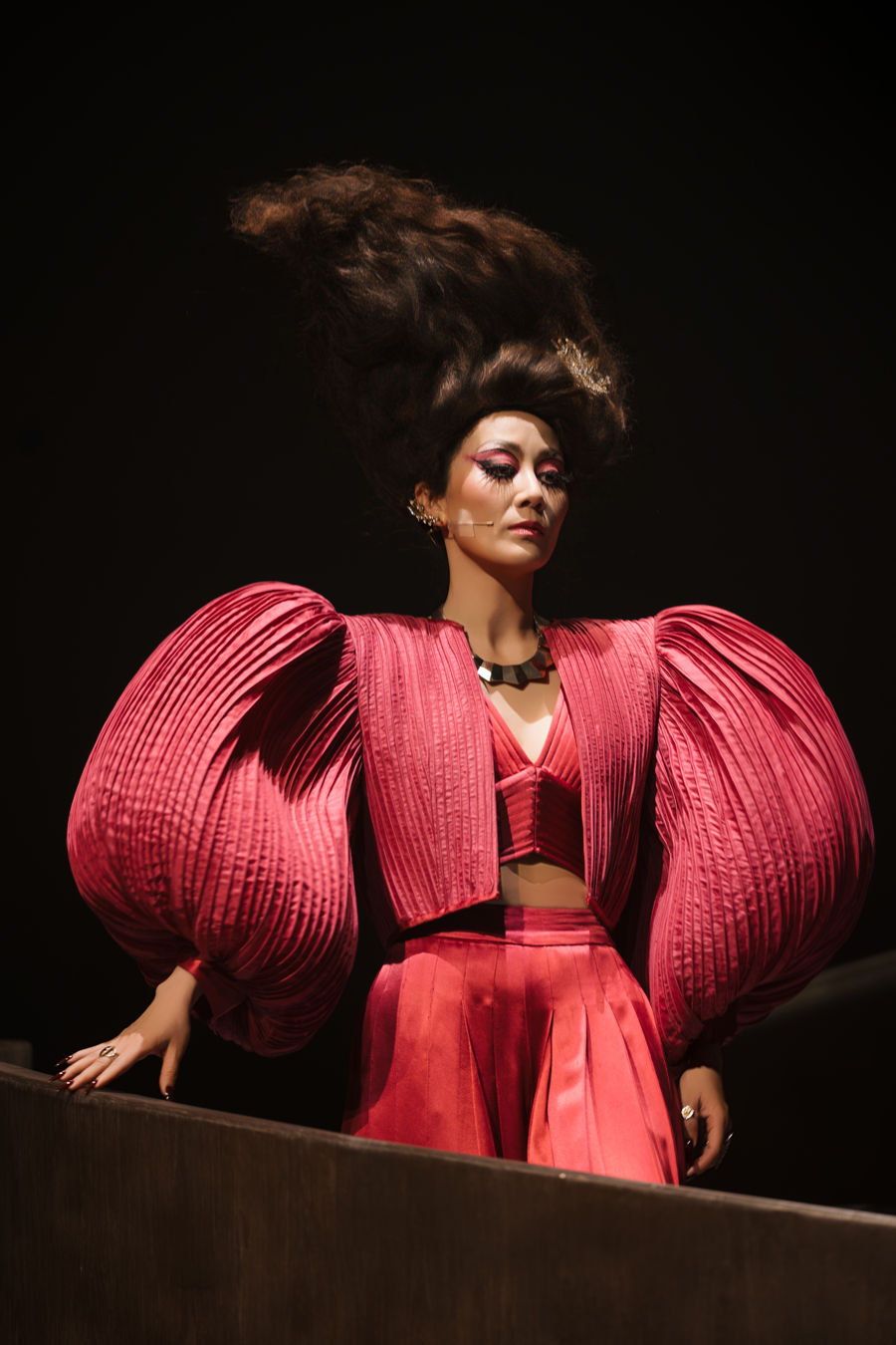 舞好意思盘算推算伊娃与服化盘算推算瓦西莉基从古希腊柱式的光影褶皱与中国折扇、传统工艺的褶皱中摄取灵感,和会两种文静的气质,打造出具有建筑感的夸张造型,规复阿里斯托芬笑剧中怪诞又秀逸的视觉宇宙。