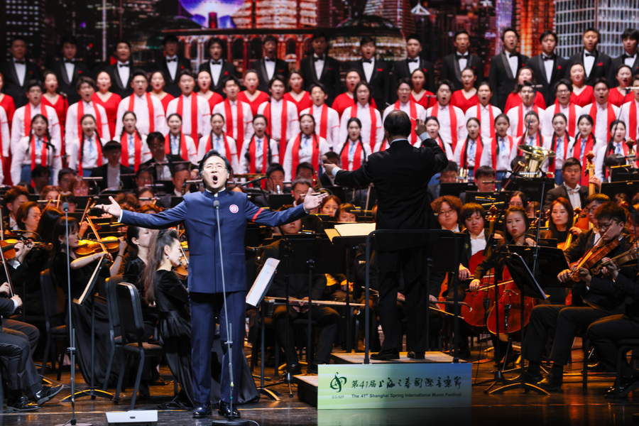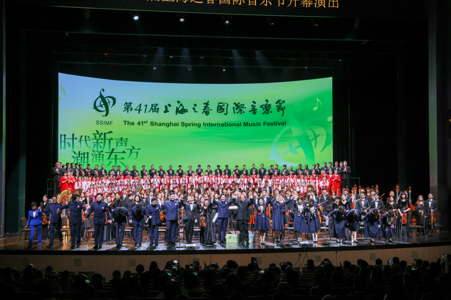 北外滩盟国大剧院3月26日晚灯光文雅,第41届上海之春国外音乐节(以下简称“上海之春”)认真启幕。开幕庆典上,“七一勋章”取得者、驰名作曲家吕其明,上海音乐学院院长、男中音称赞家廖昌永,上海歌剧院院长、男高音称赞家石倚洁共同运行音乐节开幕安设留声机。